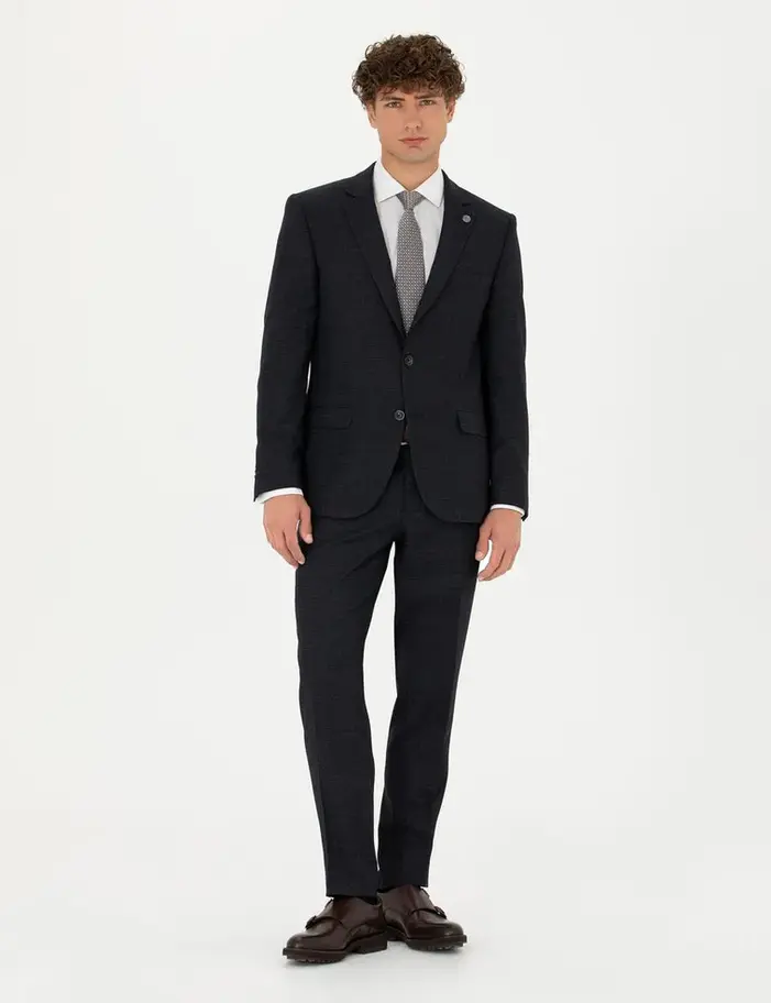 Tünd göy Ekstra Slim Fit Yün Qarışıqlı Kostyum